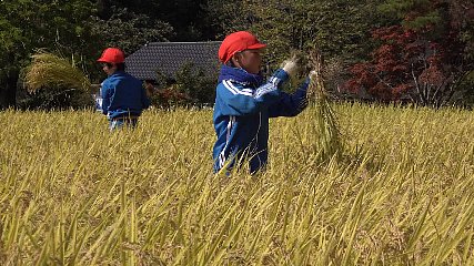 附馬牛小学校の5・6年生がおととい(9日・水曜日)、遠野ふるさと村で昔ながらの稲刈りを体験しました。地元・附馬牛の食文化を学ぼうと児童たちは、昔ながらの風習を伝えるまぶりっと衆・早池峰の会と一緒に稲刈りに挑戦しました。春には田植えを体験した児童たち。黄金色に立派に成長したもち米の稲を上手にカマで刈り取っていきました。そして、作業の大変さを体感しながら、収穫する喜びを味わっていた様子でした。収穫のあとは、こびるの時間です。児童たちは、「がんづき」を食べながら、まぶりっと衆に稲刈りについて質問したりこの日の感想を述べたりして交流を深めていました。Copyright(C) TonoCableTelevision. All rights reserved.