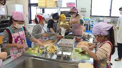 子どもたちが食について学ぶちびっこ栄養教室が、きょう総合福祉センターで開かれました。この栄養教室は、食べ物の正しい知識を身につけるとともに、料理の楽しさを知ってもらおうと夏休みと冬休みの間、市内の小学生を対象に遠野市が開いています。冬休み期間は、7つの児童館・児童クラブで開かれていて、きょうは、白岩児童館の児童13人がいわしのかば焼き丼など3種類の料理を作りました。児童たちは、遠野市食生活改善推進員から野菜の切り方や、調味料の計り方を教わりながら初めに、みそ汁とデザートを作りました。続いて、いわしの下ごしらえに挑戦しました。魚をさばいたことが無いという児童が多く、初めは、少し戸惑っている様子でしたが、包丁を入れる手順を教えてもらうと、児童たちは丁寧にいわしをさばいていました。そして最後に、料理を教えてくれた食生活改善推進員の人たちと一緒に作った料理を味わいました。やはり、自分たちで作った料理は格別なようで、中にはおかわりをする児童もいました。なお、あすは小友児童クラブで栄養教室が開かれる予定です。Copyright(C) TonoCableTelevision. All rights reserved.