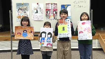 子どもたちが、きのう(8日・水曜日)市立博物館で上映中の「ザシキワラシ」を紹介するポスターを作りました。このイベントは、現在、市立博物館で開催されている「遠野なつかしの映画チラシ展」の開催を記念して開かれました。きのう、子どもたちがポスターにするのは、市立博物館で上映されている「ザシキワラシ」です。初めに、市立博物館のマルチスクリーンシアターに足を運んだ子どもたちは、ザシキワラシのアニメーション動画を見ながら、どんなポスターを作ろうか、考えを巡らせていました。上映後、早速ポスター作りに取りかかりました。同じ映像を見た子どもたちですが、表現した場面はそれぞれ異なり、個性があふれていました。「ザシキワラシ」の住む家は、幸せが訪れると言われていますが、子どもたちは「家にもザシキワラシがこないかな」と少し期待しながら、真剣なまなざしで絵の具の筆を走らせていました。思い思いの作品が完成した子どもたち、冬休みの思い出の1ページとなった様子でした。Copyright(C) TonoCableTelevision. All rights reserved.