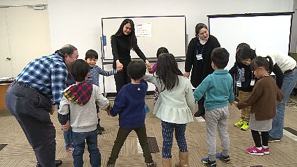 今年度最後となる子ども向けの英語教室「キッズワールドクラブ」が先週土曜日(18日)、市民センターで開かれました。この教室は、子どもたちに歌やダンスを通じて楽しみながら英語を学んでもらい、外国の文化を理解する心を育んでもらおうと、遠野市教育文化振興財団が毎年、開いています。今年度は、去年6月から年齢ごと2つのクラスに分かれて教室が開かれ、参加した小学1・2年生10人と、年中・年長児15人が楽しみながら英語に触れあってきました。最終回となったこの日、年中・年長児を対象にしたキャンディーコースでは10人が参加し、講師を務める外国語指導助手のアリアン・ネブリーダさんと右近真奈美さんから、歌やゲームなどをしながら英語を学びました。そして、教室が終わると参加した子どもたち一人一人にがんばった証として修了証書が贈られました。なお、遠野市教育文化振興財団では、来年度以降も子どもたちの英語に触れあう機会としてキッズワールドクラブを開催するということです。Copyright(C) TonoCableTelevision. All rights reserved.