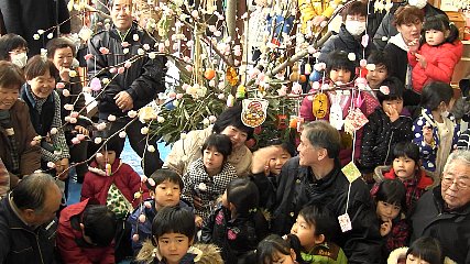 青笹子育て村で先週水曜日(15日)小正月行事が行われました。その様子が届きましたのでお伝えします。青笹子育て村の小正月行事は、子どもたちと地域の人たちが世代間交流を図りながら伝承していこうと、「みんなで築くふるさと遠野推進事業」の補助を活用し、毎年、この時期に行われています。この日は、青笹保育園の園児や青笹児童館の児童、保護者などおよそ120人が参加しました。行事が始まると参加した子どもたちは、講師を務めた青笹町老人クラブ連合会の会員の手ほどきを受けながら、餅つきをしたりみずき団子づくりをしたりして、小正月の風習を体験しました。また、この日は、カラスが農作物にいたずらしないように祈る「からすよばり」や、五穀豊穣を願い、松の葉を稲に見立てて雪に植える「お田植え」も行われたということです。最後に子どもたちは、自分たちがついたお餅やとん汁、漬物をおいしそうに食べ、地域の人たちとの交流も深めていたということです。Copyright(C) TonoCableTelevision. All rights reserved.