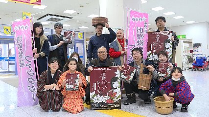 いよいよ来週に迫った遠野物語ファンタジー、キャストとスタッフが先週土曜日(8日)市内の商業施設などで公演をPRしました。45回目となる市民の舞台遠野物語ファンタジーは、土淵町を舞台に、遠野物語の中の「座敷わらしと山口孫左衛門」の話をもとにして書かれた「座敷わらしの白い花」です。公演まで2週間を切った先週土曜日、衣装に身を包んだキャストとスタッフが、さまざまな世代の市民にファンタジーを知ってもらい、ぜひ見に来てほしいという気持ちを込めて、ティッシュやチラシを配りました。ティッシュ配りは初めての試みということで、受け取った人たちからは「毎年楽しみにしています、頑張ってくださいね」など、温かい言葉が送られていました。遠野物語ファンタジーは、来週22日・土曜日から2日間に渡って3回の公演が予定されていて、来場者全員にプレゼントがあるということです。なお、チケットは、各地区センターなどで販売されています。Copyright(C) TonoCableTelevision. All rights reserved.