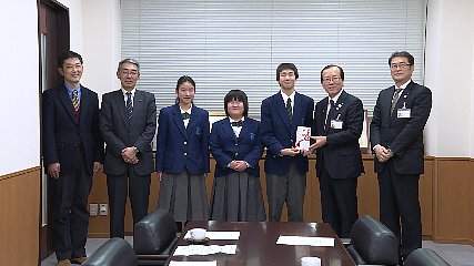 遠野市の市勢振興に役立ててほしいと、きのう(13日・木曜日)緑峰高校の生徒たちがチャレンジショップ緑屋での売り上げ金を市に寄付しました。きのう、とぴあ庁舎を訪れたのは、チャレンジショップ緑屋で店長と課長を務めた緑峰高校情報処理科2年の生徒3人です。緑峰高校情報処理科の2年生19人は、去年10月にマーケティング授業の一環として「チャレンジショップ緑屋」を開催し、買い物ニーズ調査から商品の発注、販売までを行いました。この売り上げの全額を、大槌高校や学校の関連機関に寄付していて、このうち、遠野市には市勢振興に役立ててほしいと5万円を贈りました。本田市長は「チャレンジショップ緑屋を通して学んだことが、これからの高校生活や次のステップに繋がります。重いお金であるとしっかりと受け止めながら、活用させていただきます」と、生徒たちの頑張りに感謝していました。Copyright(C) TonoCableTelevision. All rights reserved.