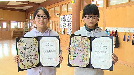 税に関する絵はがきコンクールで釜石地区法人会会長賞などを受賞した附馬牛小学校の児童たちに先週(19日・水曜日)、表彰状が贈られました。このコンクールは、税金が毎日の生活の中でどのように役立っているのかを小学生に理解と関心を深めてもらおうと釜石地区法人会などが実施しました。このコンクールに遠野・釜石・大槌の22の小学校のうち11校から233枚の応募がありました。この中でインパクトがあるコメントや芸術センス、色彩が豊かで表現が可愛らしいなどの評価を受けた附馬牛小学校6年の佐々木美佳さんが釜石地区法人会会長賞、附馬牛小学校6年の小玉彩矢さんが釜石地区法人会女性部会長賞をそれぞれ受賞しました。釜石地区法人会の新里進会長は「生活の中で税金がどのように使われて自分たちに関わってくるのかを感じて過ごしてください」とあいさつしていました。なお、コンクールに応募のあった作品は、来月16日まで釜石税務署で展示されているということです。Copyright(C) TonoCableTelevision. All rights reserved.