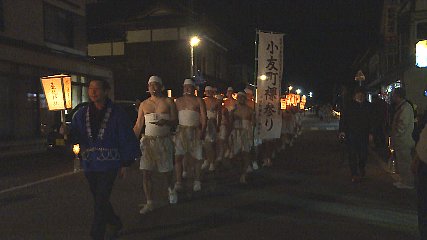 小友町の伝統行事、小友町裸参りが先週土曜日(2月29日)に行われ、参加者が家内安全や無病息災などを願って町内を練り歩きました。小友町裸参りは、およそ360年前から小友町に受け継がれている伝統行事で、毎年、年男などが県内外から参加し、厄払いや五穀豊穣・合格祈願・世界平和などの願かけを行います。ことしは、県内からの参加を募りおよそ30人が集まる中、初めに、小友地区センターで神事が執り行われました。神事では、地元・小友町の外山神楽による奉納や参加者の代表4人が祭壇に玉串を捧げ行事が無事に終わるよう祈願しました。このあと、腰にしめ縄、頭には鉢巻、わらじ履きに、下帯姿の参加者たちが列を作りました。そして、塩をまきながら道を清め大鈴を鳴らして歩く年男を先頭に、巖龍神社から大般若供養塔までの区間を3往復しました。沿道には多くの人が集まり、その姿を温かく見守っていました。この日は、無料休憩スペースも設けられ、温かい甘酒が振る舞われました。行事に合わせて、「居酒屋おっともちゃん」や小友町第2区の交流の場「おんで屋」でも温かいおもてなしが行われていました。ことしは暖冬というものの、参加者は寒さをこらえながら願をかけ、無事、3往復したあとには、頬や鼻を真っ赤にしながらも達成感に満ちあふれた表情を浮かべていましたCopyright(C) TonoCableTelevision. All rights reserved.