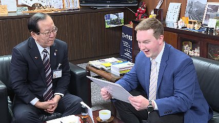 市内の小中学校で今月から英語を指導する外国語指導助手が、きのう(6日・月曜日)とぴあ庁舎を訪れ本田市長にあいさつをしました。新たに着任したのは、アメリカ・チャタヌーガ市出身のスペンサー・ターリーさんです。今年度・令和2年度から文部科学省が発表した学習指導要領の改正により、小学5年生以上から正式な教科として外国語教育が週2時間、3・4年生が外国語活動を週1時間行うということです。そうした中、遠野市では2年前の平成30年度から外国語指導助手を3人配置し、外国語教育の充実を図ってきました。スペンサーさんは、先月まで二戸市で1年間外国語指導助手を務めていました。そして、自身の出身地であるチャタヌーガ市と交流の深い遠野市に希望を出し、このたびの着任に繋がったということです。本田市長は、以前チャタヌーガを訪問した思い出を話しながら、「遠野の子どもたちはとても素直です。すぐに打ち解けられると思います」と、今後の活動に期待していました。市内には3人の外国語指導助手がおり、その内、スペンサーさんは遠野中学校・遠野小学校遠野北小学校の3つの学校を担当し、明後日木曜日(9日)から授業を行うということです。Copyright(C) TonoCableTelevision. All rights reserved.