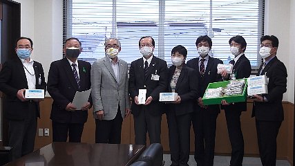 新型コロナウイルス対策に役立ててもらおうと、先週金曜日(1日)市内の団体から市にマスクなどが贈られました。この日、とぴあ庁舎を訪れたのは、遠野市職員退職者の会の及川増コ会長を初め3人です。及川会長は、「1日も早い終息を願い、市の対策に少しでも役立てればという思いで持参しました」と、本田市長に寄付金10万円の他、不織布マスク500枚、手作りマスク150枚を手渡しました。受け取った本田市長は、「現役の職員も市民のために全力で頑張っていますので、先輩として今後も叱咤激励をお願いします」と、感謝の気持ちを伝えていました。今回寄付されたものは、今後の新型コロナウイルス対策に活用されるということです。Copyright(C) TonoCableTelevision. All rights reserved.