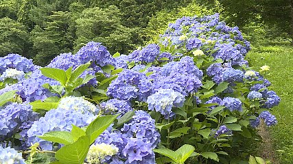 上郷町で梅雨の風物詩・アジサイが見頃を迎えています。上郷町・伊勢両宮神社の周辺では、青や白のアジサイが咲き誇り、訪れた人の目を楽しませています。このアジサイは、20年以上前に地域の人が植え、現在は、森ノ下自治会と森ノ下農地維持組合が共同で手入れや周辺の草刈りをして美しい景観を守っているということです。なお、このアジサイは今月いっぱい楽しめるということです。