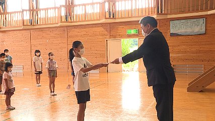 学習活動に役立ててほしいと、おととい(22日・水曜日)県内の団体から附馬牛小学校に寄付金が贈られました。おととい、附馬牛小学校を訪れたのは、公益社団法人釜石地区法人会の萩野幸弘副会長など5人です。釜石地区法人会は、税に関する事業を行っている一般社団法人岩手県法人会連合会の単位会の一つで、毎年度、釜石税務署管内の釜石・遠野・大槌の小学6年生を対象にした「税に関する絵はがきコンクール」を開催しています。また、附馬牛小学校は、6年生が授業で税について学んでいるほか、釜石地区法人会が実施している「税に関する絵はがきコンクール」に平成27年度から続けて応募し上位入賞を果たすなど、税に関する学びを深めています。そこで、毎年度、絵はがきコンクールに参加している附馬牛小学校の児童たちの学習活動に役立ててほしいと、岩手県法人会連合会から9万円が贈られました。このお金は、神奈川県横浜市の公益社団法人緑法人会が主催するチャリティーゴルフおよび、プロバスケットボールの試合での募金を活用し、岩手県法人会連合会を経由して、東日本大震災で被災した県内の小学校に毎年度贈られていて、学校で使用する備品購入費用に活用されています。今年度は、釜石地区法人会が該当になったことから、絵はがきコンクールに毎年度参加していることを基準に、釜石・遠野・大槌からそれぞれ1校ずつ選定されたということです。この日は、初めに、萩野副会長から遠野市教育委員会の菊池広親教育長に「横浜の皆さんの気持ちがこもった義援金を、児童会活動などにご活用いただければ」と目録が贈られました。そのあと、菊池教育長から附馬牛小学校の児童会長菊池咲愛さんに「皆さんの活動にお役立てください」と目録が手渡されました。受け取った菊池さんは「今後の学習活動に活用させていただきます」とお礼のことばを述べていました。附馬牛小学校では、贈られたお金を活用して、プールで使用するビート板を設置する棚や最新の図鑑セットを購入する予定で、児童の学習活動に役立てたいとしています。Copyright(C) TonoCableTelevision. All rights reserved.