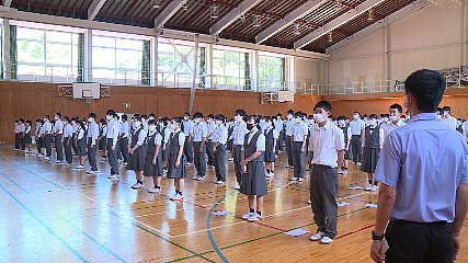 緑峰高校の始業式についてお伝えします。27日間の夏休みを終えた生徒たちは、始業式を前に、きょう(18日・火曜日)からまたお世話になる校舎に感謝の気持ちを込め、清掃に取り組んでいました。このあと、生徒たちが体育館に移動し始業式が行われました。菊池勇校長は、「ことしの夏は新型コロナウイルスの影響で特別な夏休みだったと思います。そうした中でも補修や課外活動そして部活動に励む姿が見られました。今後も、出来ること出来ないことはありますが、みんなで考えながら充実させていきましょう」とあいさつしました。なお、緑峰高校は、87日間の新学期3年生の就職に向けた採用試験や、現在、実施を検討している緑峰祭などが予定されています。Copyright(C) TonoCableTelevision. All rights reserved.