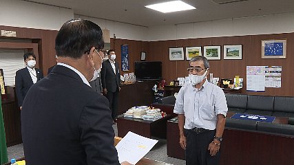 新たに就任した綾織町内の区長に対して先週木曜日委嘱状が交付されました。新たに綾織町第5区の区長に任命されたのは、伊勢崎正幸さんです。本田市長は「綾織地域のためにご尽力をお願いします」と激励し委嘱状を手渡すと、受け取った伊勢崎さんは気を引き締めた表情を見せていました。なお伊勢崎さんは、再来年の令和4年3月31日までの期間、区長として地域に寄りそった活動をしていくということです。