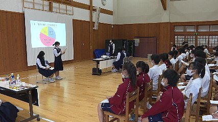 遠野高校の生徒による食生活の改善についての発表会が先週火曜日(15日)遠野中学校で開かれました。この発表会は、中学生に食生活を見直して改善してもらうと共に、遠野高校の特色ある取り組みについて知ってもらおうと開かれました。発表したのは、遠野高校の「新しい『遠野物語』を創るプロジェクト」で遠野地域における食生活改善について探求活動を行っている生徒たちです。高校生たちは、事前に遠野中学校でとった生活習慣に関するアンケートの結果を基に朝ごはんの大切さやそれぞれの食品の役割などを説明しました。また、健康的な生活を送るためにはどうすればよいのかクイズを出したり食品にはどれくらい塩分や糖質が含まれているかを実物を使って説明したりしました。中学生たちは、栄養素や野菜の種類などの質問をして、食事の大切さについて理解を深めている様子でした。Copyright(C) TonoCableTelevision. All rights reserved.