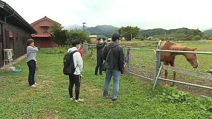 遠野旅の産地直売所で市民を対象にしたツアーが今月3日から行われています。遠野の新たな旅の拠点として去年、新穀町にオープンした「遠野旅の産地直売所」では、意外と知らない地元の魅力を市民に感じてもらい、また、知ってもらおうと、市民限定のツアーを今月3日から実施しています。今週日曜日には4人の市民が参加し、まちなかを散策する「まちぶら」と山里での体験を楽しむ「さとぶら」がそれぞれ実施されました。このうち「さとぶら」では、趣味で馬を飼っている上郷町の青山由紀子さんのお宅で、馬との触れ合い体験をしました。青山さんのお宅では、馬にえさをあげたり、実際に乗って写真を撮ったりとなかなかできない貴重な体験に参加した人たちは目を輝かせていました。また、Uターンなどで市外から移住してきた参加者は、どのように古民家を改修したのかなど、遠野での暮らしについても興味深そうに話を聞いていました。このほか、野菜やコーヒーなどを販売する物販イベントにも足を運び、出店者との交流を通じて地域への理解を深めていました。なお、市民限定のツアーは12月20日まで実施される予定となっています。Copyright(C) TonoCableTelevision. All rights reserved.