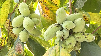 みなさんは、幻のフルーツと言われている「ポポー」をご存じでしょうか。松崎町内で、豊作となっている様子を取材しました。松崎町内にあるお宅の庭で20年ほど前から育てられているポポーの木。このポポーは、熟すのが早く、収穫時期が限られているため、市場にあまり出回らないことから幻のフルーツと呼ばれています。去年は、およそ10個の実を付けたということですが、ことしは、実の重さで枝がしなるほどの豊作となりました。この木を育てている人は、「以前、一度だけたくさん実がなったことがあるものの、ここまで多いのは初めて。びっくりしている」とたわわに実ったポポーに驚いている様子でした。Copyright(C) TonoCableTelevision. All rights reserved.