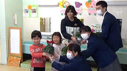 松崎町の企業が、今週月曜日(9日)緑峰高校の生徒が育てたシクラメンを遠野市に贈りました。とぴあ庁舎を訪れたのは、駒形モータースの取締役会長を務める佐々木精太郎さんと、シクラメンを育てた緑峰高校の生徒3人です。佐々木さんは、「コロナ渦でいろいろと大変だった中、生徒たちが頑張って育てました。ぜひ、保育園などに飾ってください」とシクラメン120鉢を市に贈りました。この企業では、緑峰高校の生徒が一生懸命育てた花を見てほしいと10年前から生徒が育てたシクラメンを買い取り、市に贈っています。寄付は、ことしで8回目となり、贈られたシクラメンは市内の保育園や元気わらすっこセンターなどに飾られるということです。受け取った本田市長は、「このような寄付は未来を羽ばたく子どもたちに、大きな夢と希望を与えている。生徒のみなさんも支援してくれている人の存在を忘れず、これからも、がんばってほしい」と感謝するとともに、生徒たちを激励していました。なお、このあと、佐々木さんと緑峰高校の生徒たちは、早速、市内の保育園を訪れ、子どもたちにシクラメンを手渡したということです。Copyright(C) TonoCableTelevision. All rights reserved.