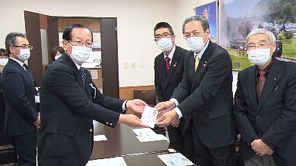 社会奉仕団体・遠野ロータリークラブが先週(18日・水曜日)、来年オープンとなる「こども本の森遠野」に役立てほしいと遠野市に寄付金を贈りました。遠野ロータリークラブは、世界的建築家である安藤忠雄さんが提唱し、遠野市で行う「こども本の森構想」に賛同しています。この日、とぴあ庁舎を訪れた遠野ロータリークラブの奥寺修会長が「『こども本の森遠野』に係る備品整備や運営経費に役立ててほしい」と寄付金20万円を市に贈りました。本田市長は寄付に感謝しながら「会員のみなさまの気持ちをしっかり受け止めながらオープンに向けて全力をあげて取り組んで参ります」とあいさつしていました。なお、「こども本の森遠野」は、来年7月にオープン予定となっています。Copyright(C) TonoCableTelevision. All rights reserved.