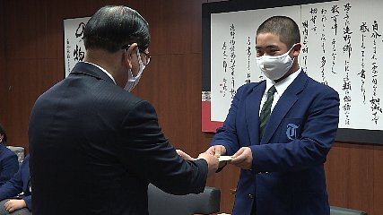 緑峰高校の生徒が、チャレンジショップ緑屋での売上金を今週火曜日遠野市に贈りました。本庁舎を訪れたのは、緑峰高校の情報処理科の生徒など7人です。情報処理科の生徒たちは、商取引を学ぶ授業の一環として自分たちで仕入れた商品を販売する「チャレンジショップ緑屋」を毎年開催しています。ことしは「遠野ショッピングセンターとぴあ」と緑峰祭で開催され、この売上金の一部を新型コロナウイルス感染拡大防止に役立ててほしいと市に6万円を寄付しました。本田市長は、「新型コロナウイルスは、さまざまな悩ましい課題を突きつけているが、みなさんの志をしっかり受け止め、活用させていただきたい」と感謝を述べていました。Copyright(C) TonoCableTelevision. All rights reserved.