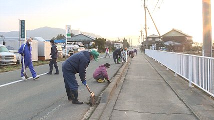 市内でおととい(6日・火曜日)、道路清掃が行われました。このうち土淵町では、雪解け後の汚れた道路をきれいにしようと、毎年この時期に清掃活動を行っています。この日、町民は開始時刻の朝6時前から行政区ごとに集まり、作業に取りかかっていました。このうち、第10区では、国道340号沿いで掃除を行う住民の姿が見られました。55世帯からおよそ60人が参加し、参加者は、スコップや箒、ちりとりなどを使って側溝にたまった砂や歩道に生えた草などを取り除いていました。列の後方にいた女性たちが、細かい隙間にカマを入れたりちらばった砂を箒で丁寧に掃いたりしながら道路をきれいにしていました。なお、土淵町第10区では、環境美化活動の他に、環境保全の一環として地域を流れる五日市川での野焼きにも取り組んでいるということです。