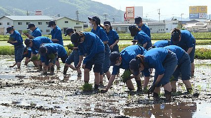 毎年恒例となっている緑峰高校の田植え実習が、きのう(26日・水曜日)学校近くの田んぼで行われました。緑峰高校では、昔ながらの手作業による田植えを体験することで、食農文化に対する理解を深めようと毎年、田植え実習を実施しています。きのう(26日)は、生産技術科と情報処理科の1年生が、緑峰高校が所有する学校近くにある15アールの田んぼに、遠野市が力を入れ生産拡大を進めている「いわてっこ」の苗を植えました。「いわてっこ」は、20年前の平成13年に岩手県のオリジナル水稲品種として誕生したお米で、適度な粘りと冷めてもおいしいことが特徴です。生徒たちは、ひんやりとした泥の感触と思うように進めない田んぼの中の移動に苦戦しながらも、徐々に感覚をつかみ丁寧に田植え作業を進めていました。なお、今後は、生徒たちが秋の稲刈りまで水田の管理を進め緑峰高校の文化祭や情報処理科の生徒が授業で取り組むネットショップで、収穫したお米を販売する予定ということです。