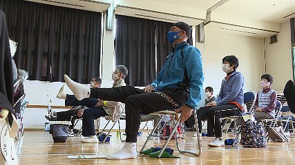 青笹もりもり健康塾がきのう(1日)開かれ、参加者が介護予防を目的としたいきいき百歳体操を体験しました。会場となった青笹地区センターでは、手指の消毒や検温、マスクの着用などが徹底されました。青笹もりもり健康塾は、町民が元気でいきいきと暮らせる地域にしようと青笹町の健康づくりサポーターが3年前から開いています。きのうは、町民主体で無理なく身体づくりに取り組んでいけるきっかけづくりとして、ことし2月から遠野市が本格的に取り組んでいる介護予防を目的としたいきいき百歳体操が盛り込まれました。体験会には、60代から90代までのおよそ30人が参加し、初めに、いきいき百歳体操について健康福祉の里の保健師から説明を受けました。いきいき百歳体操は、高知県で考案された「おもり」を使った筋力運動の体操で、全国的に効果が実証されていることから遠野市でもことし2月から本格的に取り組まれています。およそ30分間の中で、準備体操、筋力運動、整理運動があり、筋力運動では、調整可能な重りを手首や足首に巻きつけてイスに座ってゆっくりと手足を動かしていきます。今回は、体験会ということで、「おもり」を使わずに行われましたが、参加者は、効き目の大きさを実感している様子でした。終わりに、いきいき百歳体操について、遠野市の支援内容や実施するための条件について説明がありました。説明した保健師は、週に一回から二回行うことで筋力アップにつながる他、通いの場として取り組むことにより継続することや閉じこもり予防などにつながることも伝えていました。参加者は、新しい身体づくりの方法に刺激を受けていた様子でした。なお、参加者に対して青笹もりもり健康塾では、自分にあった身体づくりを探してもらえればと呼びかけています。今月は、町内の男性を対象とした大根のキムチ漬け・カクテキづくりや体をほぐすための健康体操が予定されているということです。