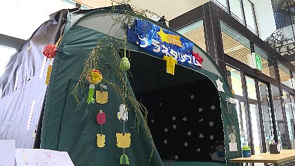 交通安全たなばたが、現在、市民センターホワイエで実施されています。交通事故防止啓発活動の一環として実施中の交通安全たなばたでは、短冊をかいたりプラネタリウムに星をはったりして遊ぶことができます。来場者には、車のライトや光があたると光るバッジなどのプレゼントも用意されていて、自由に持ち帰ることができ交通事故防止に役立てることができます。会場では、新型コロナウイルス感染症対策として、マスクの着用や大声を出さないなどの協力を呼びかけています。この催しは、来週日曜日(25日)まで実施されています。