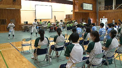 今年度の遠野高校文化祭「鍋城祭」が先週土曜日(8月28日)開催されました。今年度の「鍋城祭」は新型コロナウイルス感染症防止対策として昨年度同様外部には公開しない形で一日のみとなりました。常時換気や手指消毒などのほか、ステージ発表も午前と午後の2回に分け参加する生徒も半数ずつにするなど感染予防が徹底される中、開催できたことに感謝しながら楽しむ生徒たちの前向きな姿が見られました。今年度の鍋城祭のテーマは、「Ourownstory」。コロナ禍の中でも生徒と先生が一つになり団結を深め、自分たちだけの物語を作りあげていきたいという思いが込められています。では、3年生の生徒たちに、各クラスの展示の紹介をしてもらいましたのでご覧ください。続いて、校内の展示とステージ発表の模様をお届けします。校内には、授業や部活動での作品、新しい遠野物語を創るプロジェクトの報告なども展示されました。また体育館では、生徒会企画のほか、邦楽部・吹奏楽部が演奏を披露し、野球部も一緒に会場を盛り上げていました。コロナ禍という厳しい状況下での開催となった鍋城祭でしたが、生徒たちは高校生活での特別な1日を思う存分楽しんでいる様子でした。なお、各クラスの黒板アートについては参加生徒による投票が行われ、3年4組の作品が世界観が統一されている、遊び心で満たされているなどの理由から1位を獲得したということです。