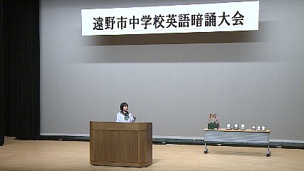 遠野市中学校英語暗誦大会が先週木曜日(2日)、みやもりホールで開かれました。この大会は、市内中学生の英語力向上と表現力を身に付けてもうおうと、遠野市教育研究会外国語部会が毎年、この時期に開いています。去年は、新型コロナウイルス感染症の影響により中止となりましたが、ことしは、参加する生徒や引率教諭の2週間前からの検温記録や発表ごとに演台を消毒するなど感染防止対策がとられました。この日は、市内3つの中学校から参加した1年生から3年生までの18人の生徒たちが、普段、英語の授業で使っている教科書から引用した英文を発表しました。大会での審査項目は、発音やイントネーションを評価する「音声」、ジェスチャーや顔の表情をみる「表現」、そして、しっかりと暗記できているかをみる「暗誦度」の3項目です。参加した生徒たちは、少し緊張した面持ちでいましたが、いざ自分の発表になるとはきはきとした発音やジェスチャーを交えながら授業や空き時間を利用して培ってきた英語力を発揮していました。なお、大会の結果、1年生の部では、遠野中学校の留場華愛さん、2年生の部では、遠野西中学校の佐々木柾治さん、3年生の部では、遠野東中学校の小水内ゆりあさんがそれぞれ1位に選ばれたということです。