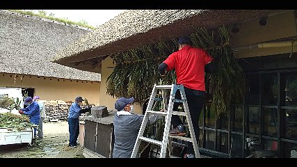 ほうきづくりに使うほうき草の収穫が先週火曜日土淵町で行われた様子が届きましたのでお伝えします。土淵町地域づくり連絡協議会では、文化と技術の継承と世代間交流を目的に昨年度からほうきづくりに取り組んでいます。今年度は、ほうき草の栽培にも挑戦しており、ことし5月に種をまいたということです。このほうき草が収穫の時期を迎えたことから、先週火曜日、地域づくり連絡協議会のほか土淵町老人クラブと伝承園のスタッフで刈り取りや剪定などを行ったということです。刈り取ったあとはほうき草を乾燥させるために伝承園のかやぶき屋根の下に干したということです。なお、10月ごろに脱穀をし、その後、このほうき草を使ったほうきづくり講座が開かれる予定です。