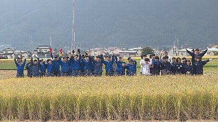 緑峰高校で先週木曜日(7日)稲刈り実習が行われ、1年生の生徒が手刈りを体験しました。緑峰高校では、生徒たちに農業の厳しさや楽しさを感じてもらおうと、情報処理科と生産技術科の1年生を対象に田植えと稲刈りの実習を行いました。春には、遠野市からのサポートを受けて1号田から3号田までのおよそ80アールの田んぼに岩手県が推奨している「いわてっこ」を植え、生徒たちは昔ながらの手植えを体験しました。そして、いよいよ秋の収穫シーズンを迎え、生徒たちは、たわわに実った1号田の稲を鎌を使って手作業で刈り取っていきました。予定では、3年生の生徒が指導することになっていましたが、雨で1日遅れとなり中止となりました。参加した生徒たちは、仲間たちと和気あいあいと楽しそうに作業を進めながらも、鎌を駆使して稲を刈ったり刈った稲を機械に運んだりと農業の厳しさについても肌で感じている様子でした。なお、収穫したお米は、今月23日(土曜日)・24日(日曜日)に開催される緑峰祭で販売されるということです。
