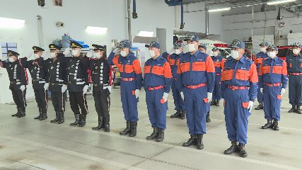 消防機械器具の配置式が、先週金曜日(26日)総合防災センターで行われました。遠野市は市民の安全を守るため、車両や小型動力ポンプといった遠野市消防団で長年使用されているものを優先に更新をしています。今年度、新たにおよそ600万円で小型動力ポンプ3台を購入し、小友町長野地区の第3分団第3部など3カ所に配置することになりました。配置式では多田市長から松田克之消防団長に配置書が交付されました。多田市長は、「気候の変動により災害に見舞われることが増えると予測されます。皆さんの安全を第一にすることを念頭に置き、市民の安全を守るようお願いします」と団員の活動に期待を寄せていました。配置式のあと、機械器具の取り扱い説明が行われ、消防団員たちは新しい小型動力ポンプを確認し、防災への意識をより高めていました。