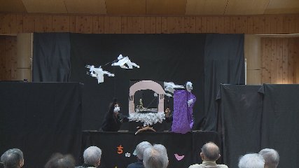 市内の団体が先週金曜日(17日)松崎町の通所介護施設を訪れ人形劇などを披露し、利用者を楽しませていました。松崎町にあるふれあいホーム薬研淵を訪れたのは、市内で人形劇や読み聞かせなどを行っている団体、ちびっこクラブちゅんちゅんです。ちゅんちゅんでは、日本をはじめ世界の物語をみんなに楽しんでもらいたいと、依頼のあった保育園や小学校、老人福祉施設などを訪れ人形劇や読み聞かせを行っています。この日は、ふれあいホーム薬研淵の利用者32人を前にロシアの童話をモチーフとした人形劇や手遊び歌などを披露し、楽しいひと時をプレゼントしていました。ほかにも、宮沢賢治の「アメニモマケズ」の朗読など全部で6つの演目が披露されると、ちゅんちゅんのメンバーに利用者からは、「良かった、良かった」とたくさんの拍手が送られていました。