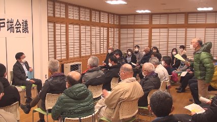 総合福祉センターを会場にきのう(20日・月曜日)、みんなの井戸端会議が開催されました。きのうは、およそ30人が参加しました。地域住民から多田市長に松崎未来づくり協議会内のまちづくりプロジェクトチームが行っている活動状況等の報告があったあと、地域課題などについて懇談となりました。懇談の中で、「白岩児童センターの建設について」質問が出ると、多田市長は「白岩児童センターの建設については、道路や保育園なども含め、遠野北小学校エリア全体を考えるため、令和4年度当初予算に関連事業費を計上し、取り組んでいく予定である」と答えていました。このほか、八幡市営住宅の解体後の活用や環境整備、水田の転作に係る国交付金の減額に対する支援、国体記念公園市民サッカー場南側の道路への歩道設置などの意見提言も出ました。最後に、多田市長は「ただちに全ての課題を解決することは難しいが、地域活動を活性化する方法を一緒に考えていきましょう」と話していました。なお、きょうは、綾織町、あす(22日・水曜日)は土淵町、あさって(23日・木曜日)は附馬牛町でそれぞれ開催予定です。