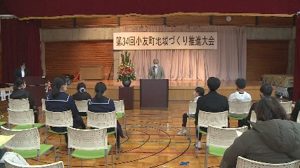 小友町地域づくり推進大会が、先週土曜日(8日)小友地区センターで開かれました。この大会は、小友の歴史や恵まれた豊かな自然環境、文化の保存、継承など市民協働の地域づくりの推進を図ろうと、小友町まちづくり協議会が開きました。この日は、手指消毒やマスクの着用といった新型コロナウイルス感染症予防対策が取られる中、町民およそ70人を前に外山神楽保存会による「権現舞」がオープニングを飾りました。続いて表彰に入り、小友町地域づくり連絡協議会から現在の組織である小友町まちづくり協議会の設立に尽力した故・菊池武夫さんに感謝状が贈られました。また、小友町の地域づくりに功績のあった3団体とスポーツや芸術・文化で活躍した小学生15人、そして中学生13人にそれぞれ表彰状が贈られました。この後、小友町まちづくり協議会の菊池章男会長が「地区センターの指定管理者制度に移行して1年目となった去年は、コロナ禍の影響により予定していた事業が中止、縮小となりました。ことしは4月から小友町の5つの行政区が3つの行政区への再編、区長制度の廃止といった変革の年となりますが、共に支え合い、助け合う地域づくりを進めるため、多くの町民の参加と支援をお願いします」とあいさつしました。この後、民生功労の表彰を受けたサロン陽だまりの会の大久保初代会長が受賞者を代表して謝辞を述べました。また、大会では、小友小学校の子ども語り部が登場。5人の児童が得意の昔話を披露し華を添えました。この他にも去年11月に開催となった小友町収穫祭の様子のDVD上映もあり、集まった人たちは、映像を見つめながら活動を振り返っていました。なお、小友町まちづくり協議会では、ことし、コロナ禍を乗り越え町民一丸となった地域づくりを展開していくということです。