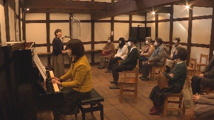 こども本の森遠野で今週(16日・日曜日)、定例のイベント、ミニツアー&シアターが開催されました。このイベントは、こども本の森遠野がオープンして以来毎月開催されていて、今月は市内に住む山本惠子さんと、ピアニストの名須川明子さんによる歌と演奏が披露されました。山本さんは、遠野小学校の全校表現活動の歌唱指導を20年行っていて、この日はその基となった「歌物語遠野物語」の一部を、歌と朗読そしてピアノで表現しました。集まった人たちは、美しい歌声と演奏につつまれ、心地よい時間を過ごしていた様子でした。最後に、ロシアの音楽院を卒業している名須川さんがロシアの歌を披露すると、会場からは大きな拍手が送られていました。なお来週29日・土曜日は、未就学前の親子を対象に豆まき会が予定されている他、2月も多くのイベントを企画しているということです。詳しくは、こども本の森遠野までお願いします。