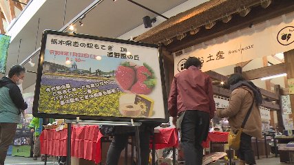 遠野風の丘で先週土曜日(22日)、「道の駅もてぎ」から今が旬のいちごなど茂木町の物産が販売されました。この日限定で販売を行ったのは、栃木県の「道の駅もてぎ」です。スタッフ3人がPCR検査を受けた上で店頭に立ちました。この日限定で販売されたいちごは、完熟の状態で持ってきたという鮮やかな赤色をした「とちおとめ」や酸味が少なく甘いのが好きな人におすすめという新種の「とちあいか」で、午前8時半から大勢の人が買い求めていました。この交流販売は、緑峰高校出身の工藤寛之さんが、栃木県芳賀郡茂木町の地域おこし協力隊としていちご栽培に励んでおり、育てたいちごを遠野の人にも食べてもらいたいと「道の駅もてぎ」のスタッフの賛同で実現しました。東日本大震災以降、道の駅同士の交流が盛んに行われるようになり、その道の駅交流の中から工藤さんと「道の駅もてぎ」の出会いも生まれ、ことしで3年になるということです。また、この日は、いちごの他にも、茂木町の特産品・ゆずを使った加工品や米粉で作ったバウムクーヘンなど魅力的な商品が並び、訪れた人たちは買い物を楽しんでいる様子でした。なお、この日、用意していたいちごおよそ260パックは午前のうちに完売し、その他の商品も好評な売れ行きだったということです。なお、遠野風の丘でも、今度も道の駅の交流に取り組んでいきたいとしています。
