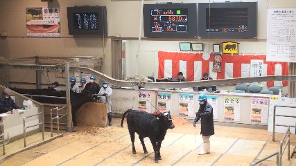 ことしの中央家畜市場初市式が先週(19日・水曜日)、雫石町にある全農いわて中央家畜市場で行われた様子が届きましたのでお伝えします。この日は、市場開設者である全国農業協同組合連合会岩手県本部の高橋司本部長や達増知事、多田市長などが出席し、ことしも高値が多く出ることを願い市場の前に鏡割りを行いました。この後、ことし・令和4年1月期の和牛子牛市場が開催となりました。この日は、遠野市や矢巾町などで育てられた和牛子牛270頭が上場され、このうち遠野からは去勢が55頭、雌が46頭でした。なお、この日の雌の和牛子牛最高額は83万4900円でしたが、遠野で育てられた牛だったということです。