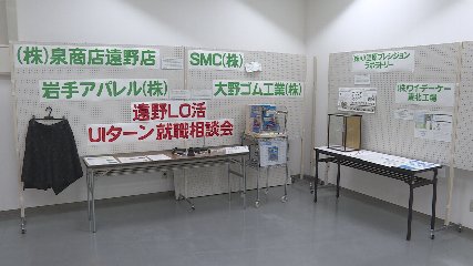 現在、市内事業所の製品や事業内容を紹介する展示が、遠野ショッピングセンターとぴあで行われています。市商工労働課では、若者の雇用促進などを図るため、今年度からとぴあ1階に雇用PRコーナーを開設し、市内の事業所を紹介しています。現在は、来週水曜日に予定されている、就職相談会に参加する事業所の製品やパンフレットなどが展示されています。なお、就職相談会は、午後1時から市役所本庁舎で開かれる予定で、オンラインでの相談もできるということです。詳しくは市商工労働課までお願いします。