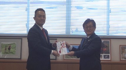 釜石地区法人会が先週木曜日遠野市に寄付金を贈った様子が届きましたのでお伝えします。とぴあ庁舎を訪れたのは、釜石地区法人会遠野支部の萩野幸弘支部長などです。釜石地区法人会は、遠野・釜石・大槌に拠点を持つ企業を会員とする団体で、租税教育や復興支援活動などさまざまな事業に取り組んでいます。そのうちの、社会貢献事業の一環として、子どもたちへの伝統文化継承などに役立ててほしいと、先週木曜日、市に寄付金60万円を贈りました。多田市長は、「これまでも多くの寄付をいただいていると聞いていました。本当にありがとうございます」とこれまでの厚意に対しても感謝を伝えていました。なお、この日贈られた寄付金は、市内小中学校の教材の購入などに役立てられるということです。