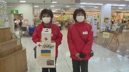 遠野市地域婦人団体協議会が表裏一体で取り組んでいる遠野市赤十字奉仕団がきょう(25日・金曜日)、市内2カ所で募金の協力を呼びかけました。遠野市赤十字奉仕団では、ロシアによるウクライナ侵攻で苦しい状況にある人々を支援するため、奉仕団のメンバー9人が市内の商業施設とスーパーマーケットの2カ所に分かれて募金活動を実施しました。その中、遠野ショッピングセンターとぴあでは、メンバー4人が買い物客などに募金の協力を呼びかけていました。また、現在、遠野市内の公共施設8カ所にウクライナ人道危機救援募金の募金箱が設置されています。募金箱を設置している日本赤十字社岩手県支部遠野市地区では、市民皆さまの温かい支援を呼びかけています。なお、募金については、日本赤十字社が行うウクライナの人道危機対応と避難民の受け入れなどの救済活動に充てられるということです。