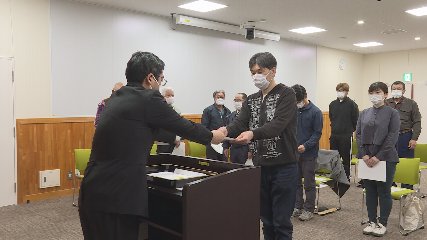 遠野市鳥獣被害対策実施隊の辞令交付が今週火曜日(12日)市役所本庁舎で行われました。鳥獣被害対策実施隊は、ニホンジカといった野生動物による農作物被害を減らすため狩猟免許を所持している人達が有害鳥獣の捕獲や駆除、また、捕獲技術の向上、担い手の育成などに取り組みます。この日は、今年度から新たに活動を開始する9人の隊員に市農林課の奥寺孝光課長から辞令書が手渡されました。任期は今月1日から令和6年3月31日までの3年間となります。この後、奥寺課長は「遠野市のニホンジカによる農作物被害はおよそ1億円となっています。これ以上被害が広がらないように皆様のご尽力をお願いします」と協力を呼び掛けていました。遠野市によりますと昨年度、市内では、県内で最も多いニホンジカ2784頭、イノシシ13頭が捕獲されています。過去5年間で見ても年々増加傾向にあるということです。新たに隊員となった9人は、有害鳥獣を捕獲し少しでも農作物被害を減らそうと決意を新たにしている様子でした。なお、今年度遠野市鳥獣被害対策実施隊は、新規隊員9人を含め111人で活動を開始するということです。