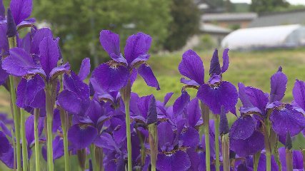 土淵町内に咲く花が見頃を迎えていると情報をいただきましたので撮影してきました。こちらは土淵町飯豊の宮沢橋付近です。五日市川沿いには、鮮やかに咲くアヤメが並んでいました。きょうはあいにくの雨模様でしたが、美しく咲き誇る濃い紫色の花びらを見ると、心が落ち着き穏やかな気分になりますね。あやめの花言葉は、「良き便り」「メッセージ」「希望」だそうです。一面のアヤメと一緒に良い知らせを待ってみるのもいいですね。