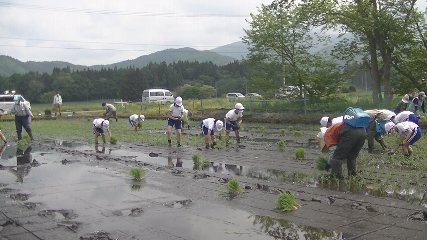 上郷小学校の児童たちが田植え体験をした様子が届きましたのでお伝えします。上郷小学校では毎年、米づくりを学ぼうと総合的な学習の時間を使って稲作学習を行っています。この日は、5年生と6年生の児童合わせて14人が地元の農家、菊池正則さんの田んぼに「ヒメノモチ」という苗を植えました。田植えが始まると児童たちは、ぬかるみの中に裸足で入りその独特な感触に歓声をあげながら作業を進めていたということです。なお、上郷小学校では秋に稲刈りをしてその後は、夢産直かみごうで収穫したもち米やそのもち米で作った大福、切り餅の販売体験を行うということです。