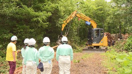 地元の林業事業に興味を持ってもらおうと高校生を対象にした林業の仕事紹介が先週木曜日(2日)青笹町の木工団地で行われました。林業の仕事紹介は、遠野農林振興センターと遠野市が高性能林業機械の操作体験などを通して地元の林業事業への就職やいわて林業アカデミーへの進学を促そうと遠野地域で初めて行われました。この日は、緑峰高校生産技術科野菜果樹研究班の3年生8人が参加しました。生徒たちは、初めに、林業の仕事や木材資源について学んだあと、さっそく担当者から各高性能林業機械の特徴を聞き、操作を体験しました。生徒たちは、さまざまな機械に試乗しオペレータの指導を受けながら、機械を操作して丸太をつかむなど貴重な体験をしていました。なお、遠野農林振興センターでは、今後も林業事業への就職などを促進するための取り組みを行っていくということです。