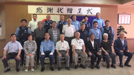 遠野警察署で今月1日(金曜日)、警察協力者に対する感謝状贈呈式が行われました。その様子が届いていますので、お送りします。7月1日は現代警察誕生の日です。これに合わせて、遠野警察署では、毎年、警察業務に協力し顕著な功労が認められた個人・団体に対する感謝状の贈呈式を行っています。今年度は、岩手県警察本部長から2個人に、遠野警察署長から9個人・2団体に贈られました。このうち、岩手県警察本部長の感謝状は、環境美化活動功労として山口京三さんに、交通安全活動功労として熊谷賢一さんに、それぞれ遠野警察署の足利信弘署長から伝達されました。また、遠野警察署長の感謝状もそれぞれに手渡され、団体では代表者が感謝状を受け取っていました。感謝状の贈呈後、足利署長は、「みなさまの地域安全、防犯、交通安全などの活動は、遠野の安全・安心を支えているものです」と、感謝の言葉を伝えていました。また、「安全・安心を実感できる遠野」の実現に向け、署員一丸となり日々の活動に取り組んでいくこと、そして、その実現のために、引き続き協力を呼びかけていました。