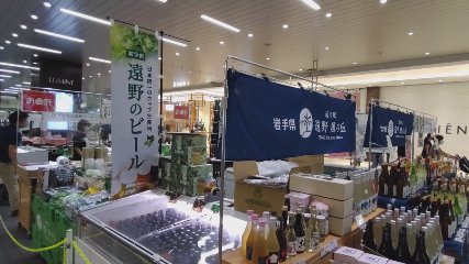 遠野市にスポットをあてた「えきたび遠野マーケット」が先週火曜日(12日)から1週間、JR大宮駅で開かれました。その様子が届きましたのでお伝えします。このイベントは、遠野の魅力を発信しようとJR東日本東北総合サービス盛岡支店が東日本旅客鉄道盛岡支社などの企画協力を経て開催しました。遠野市内からは、遠野ふるさと商社や遠野市観光協会、ブリューグッドなどが参加し、遠野の素材を活用したクラフトビールやどぶろく、パドロン、スイーツなどの特産品を販売したほか、8月に予定されている遠野ホップ収穫祭、9月に予定されている遠野まつりなどの観光誘客PRも行われました。また、初日の12日には、遠野まつり50周年のプロモーションとして「早池峰しし踊り上柳保存会」が公演を行い、隣接する「EkiTabiMARKET」内では遠野の魅力を発信するセミナーが開かれました。しし踊りの3回目の公演時には、JR大宮駅を利用する多くの観客が集まり、しし踊りの勇壮な踊りに大きな拍手と歓声があがり盛り上がったということです。このイベントには、首都圏に在住する遠野出身者、遠野郷人会やみやもりふるさと会の人たちも訪れ、買い物やしし踊りを楽しんでいったということです。