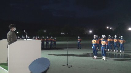 第42回岩手県消防操法競技会に出場する消防団の壮行会がおととい(20日・水曜日)総合防災センターで開かれました。その様子が届きましたのでお伝えします。競技会に出場するのは、先月開かれた遠野釜石地区支部消防操法競技会において、ポンプ車の部で優勝した第7分団第1部と、小型ポンプの部で優勝した第5分団第2部です。この日の壮行会では、初めに両分団による訓練が披露されました。訓練の様子を見届けた多田市長は、「コロナ禍で練習も満足に出来ない状況にありますが、競技会では、遠野の活気と力を見せてきてほしい」と激励のことばを送りました。この後、両分団の指揮者がそれぞれ決意のことばを述べました。なお、両分団が出場する第42回岩手県消防操法競技会は、あさって24日・日曜日、矢巾町にある岩手県消防学校で予定されています。