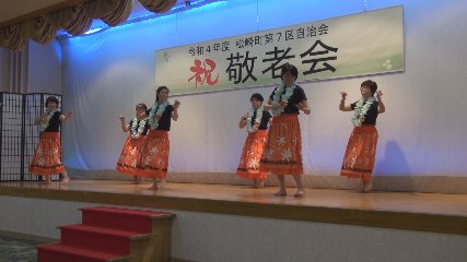 松崎町第7区自治会敬老会が開かれた様子が届きましたのでお伝えします。この敬老会は、長年にわたり社会に尽くしてきた高齢者を敬愛し長寿を祝うとともに、高齢者福祉について関心を深めるために松崎町第7区自治会が開催しました。また、コロナ禍により松崎町全体で行われていた敬老会が数年間開催されていなかったことから、今年度は行政区単位で実施し住民同士のつながりを深めるために開かれました。松崎町第7区の敬老会対象者は132人で、最高齢は103歳ということです。会では自治会役員や有志によるヒゲダンスやフラダンスが披露され、盛り上がりを見せていたということです。敬老会に出席した人たちからは、「久しぶりに皆さんと一緒に楽しい時間を過ごすことができた」や「60年前にここで結婚式をしたのを思いだす」といった感慨深い感想がでていました。松崎町第7区自治会では、「住民同士の支え合いをつないでいくにはやはり集う機会がとても大切だと実感した」と、敬老会を開催できたことに胸をなで下ろしていたということです。
