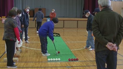 鱒沢地区サロン対抗スカットボール大会が今月5日(土曜日)に開催され、地域の交流を深めました。この大会は、スポーツやレクリエーション活動を通じて、地区住民の交流やにぎわいの創出を図るとともに、健康づくりの推進などを目的に開催されました。この日は、高齢者に人気のスティックゲームの一種、スカットボールで競い合い、簡単そうでなかなか入らないもどかしさを感じながらも、参加者からは笑顔が見られました。競技の結果、団体戦では「さわめサロン」が、また、個人戦では14点を獲得した小友福子さんがそれぞれ1位に輝いています。