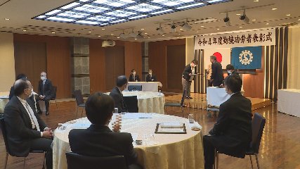 遠野商工会の勤続功労者表彰式が先週金曜日(25日)サンパークやなぎで行われました。この表彰式は、遠野商工会に加入している市内18の事業所で長年にわたり勤務し、事業所の発展のため尽力してきた人たちをねぎらおうと3年ぶりに実施されました。この日は、今年度の勤続功労者などおよそ35人が出席する中、初めに遠野商工会の佐々木弘志会長が「それぞれの企業で長年に渡り業務に励み、他の社員の模範となって発展に尽力されました。その努力と功績に対し深く敬意を表します」とあいさつしました。続いて、勤続功労者表彰が行われました。今年度、表彰を受けたのは、勤続30年以上が9人、20年以上が13人、10年以上が39人、5年以上が7人の合わせて68人です。表彰式では、出席した受賞者一人一人に佐々木会長から賞状が贈られました。このあとトーノ精密に30年6か月勤めている田中伸さんが謝辞を述べました。また、この日は祝賀会も開かれ、表彰された人たちは、これまでの労をねぎらいながら、今後の勤続への意欲を新たにした様子でした。