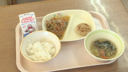 市内の畜産会社から無償で提供された遠野産の亜麻豚を使った給食がきのう(5日・月曜日)市内の小中学校に届けられました。附馬牛町にある北日本JA畜産では、子どもたちに遠野産の亜麻豚を知ってもらい、たくさん食べてもらおうと遠野市学校給食センターに亜麻豚1899食分を無償で提供しました。亜麻豚は、亜麻仁油が配合された飼料を食べて育った豚で、良質な脂身とうま味が味わえるということです。提供された亜麻豚は、きのう、給食メニューとして学校給食センターで亜麻豚丼の具として調理された後、市内の小中学校に届けられました。この内、遠野北小学校の4年生の教室では、児童たちが「いただきます」をした後、さっそく提供された亜麻豚丼の具をご飯にのせて口いっぱいに頬張りながら味わっていました。なお、今月19日・月曜日には、銀河のしずくや原木乾しいたけなど遠野産の食材を使った給食が提供されるということです。